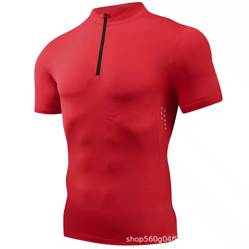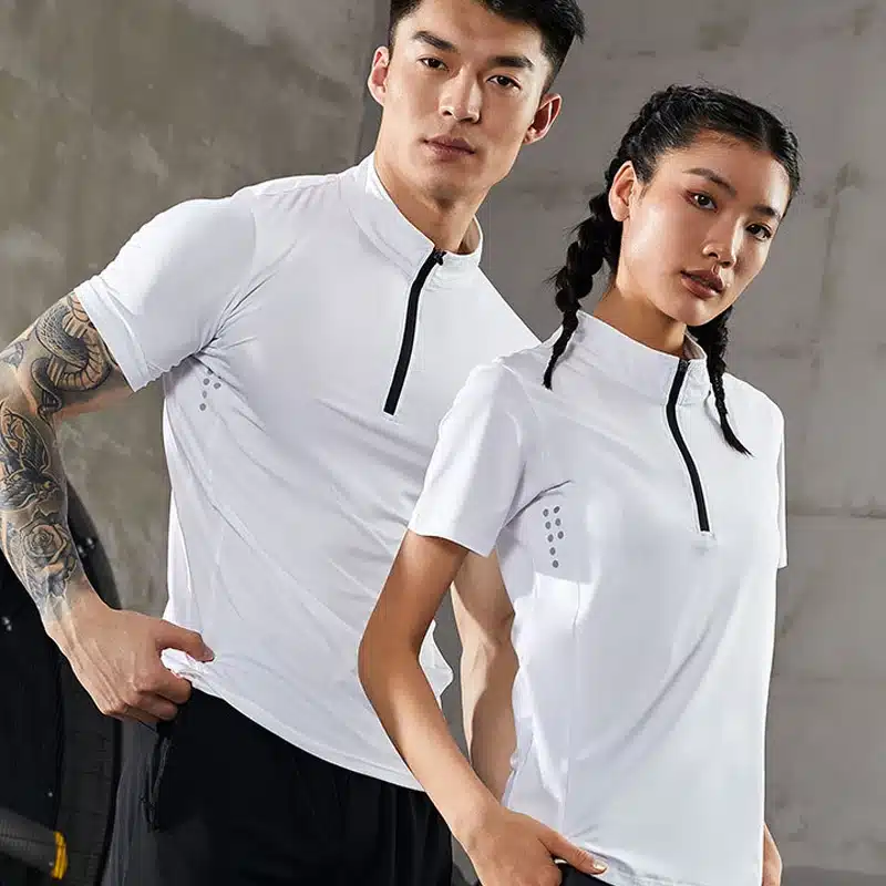 Women Running T-shirt Short Sleeve Night Running Reflective Quick Dry Sweatshirt Male Gym Jogging Top Half Zipper Clothing
