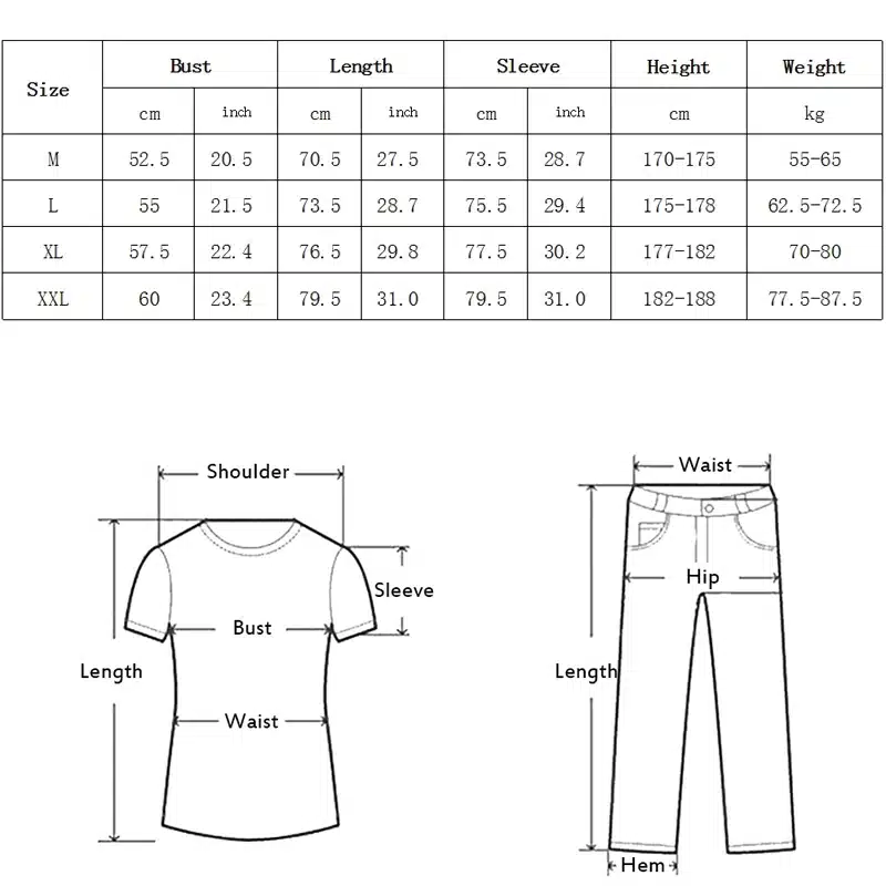 L =Bust 55cm , Length 73.5cm,For Weight 62.5-72.5kg Height 175-178cm;