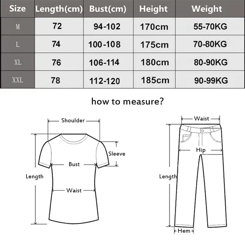 M =Bust 94cm , Length 72cm, Shoulder 51cm,For Weight 60-70kg, Height 160-170cm;
